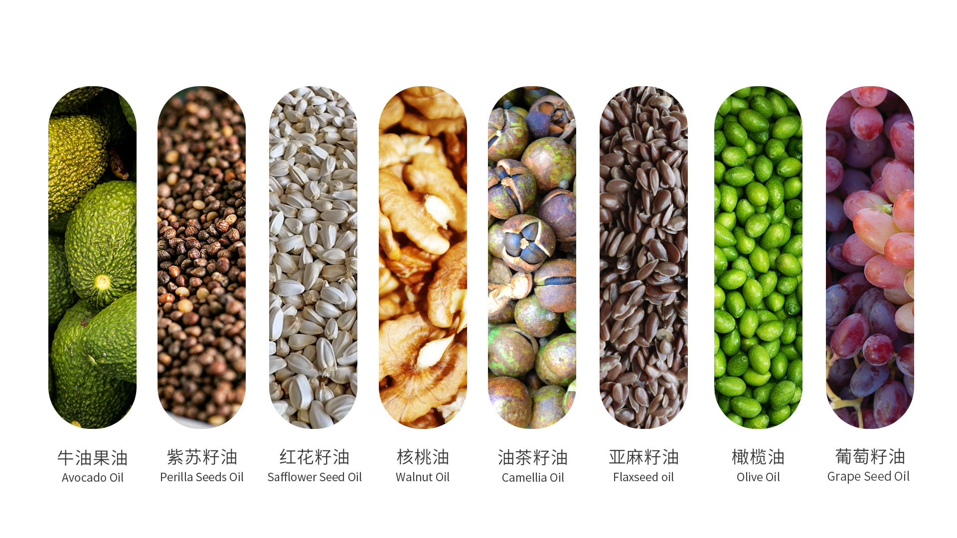 含核桃油、亞麻籽油等,低溫壓榨,營養安全。